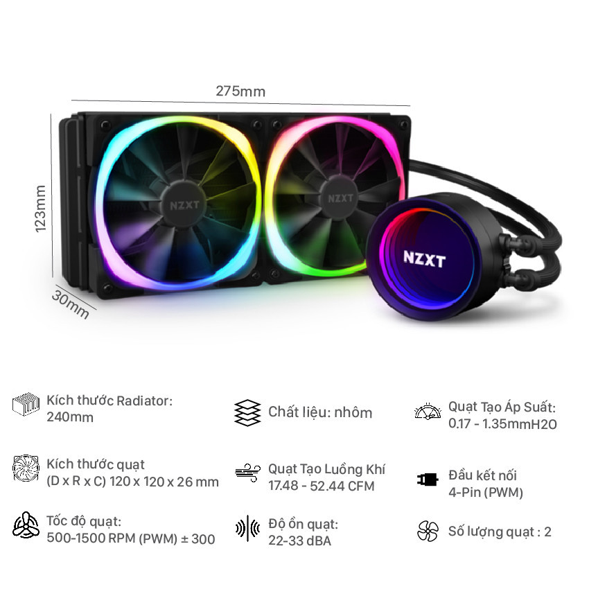 Bộ tản nhiệt nước NZXT Kraken X53 RGB – 240mm ( RL-KRX53-R1 )