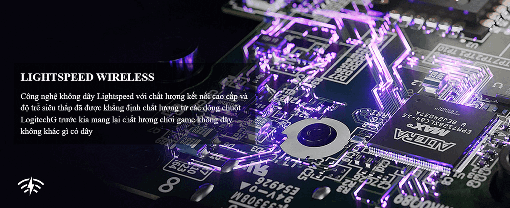 Công nghệ không dây được phát triển độc quyền bởi LogitechG với độ trễ cực thấp, mang lại cảm giác chơi game không dây tuyệt vời.