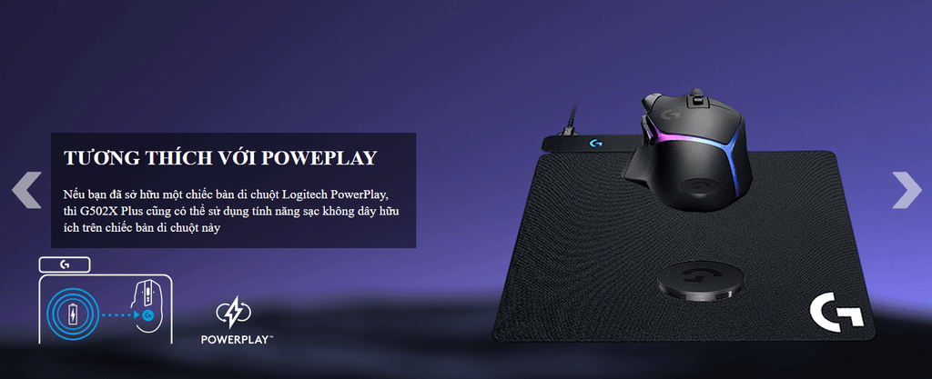 Logitech G502X Plus cũng tương thích với chiếc bàn di chuột Logitech PowerPlay, có thể sử dụng tính năng sạc không dây dễ dàng.