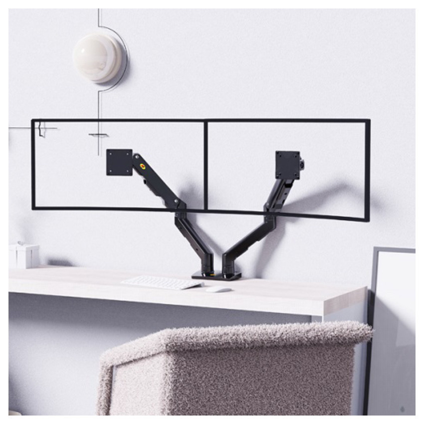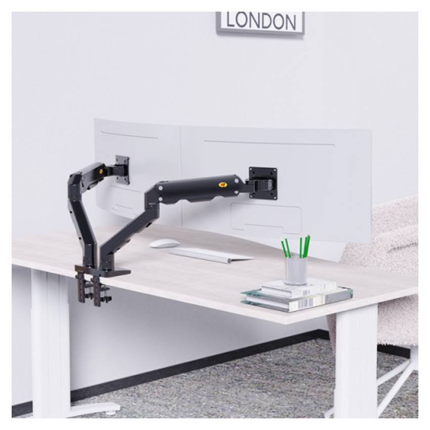 GIÁ TREO 2 MÀN HÌNH NORTH BAYOU G55 (27 - 34 INCH) KẸP BÀN - MÀU ĐEN