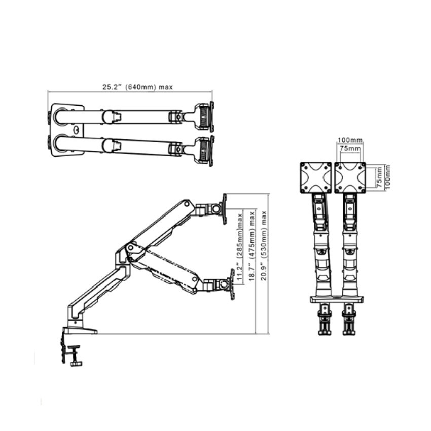 Tải trọng lên đến 16kg mỗi màn, góc lật màn hình +15°/ -60°