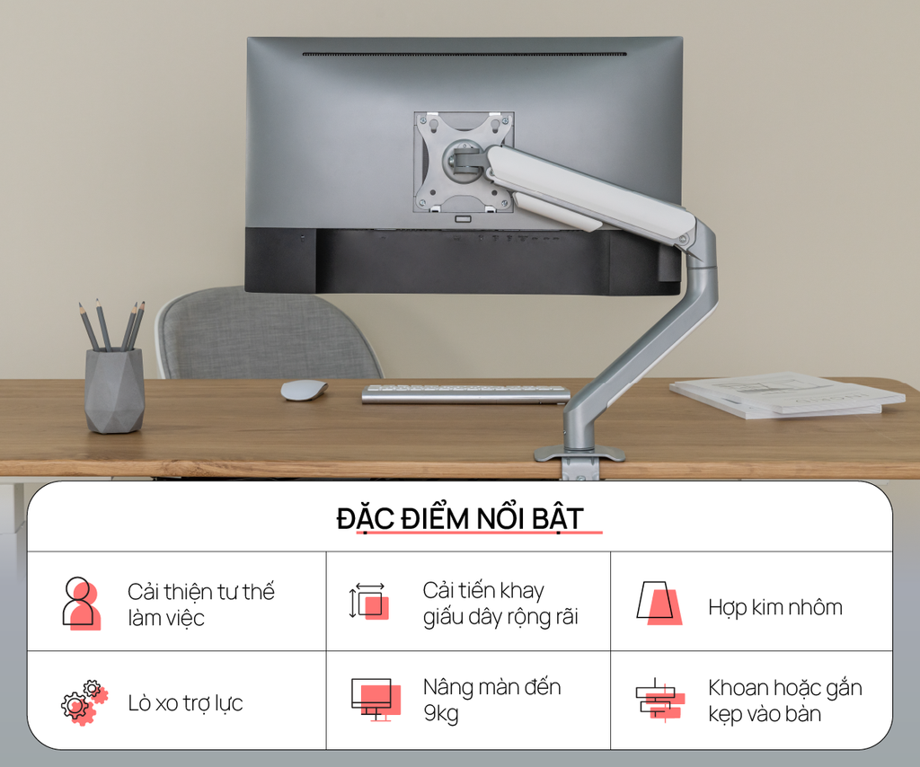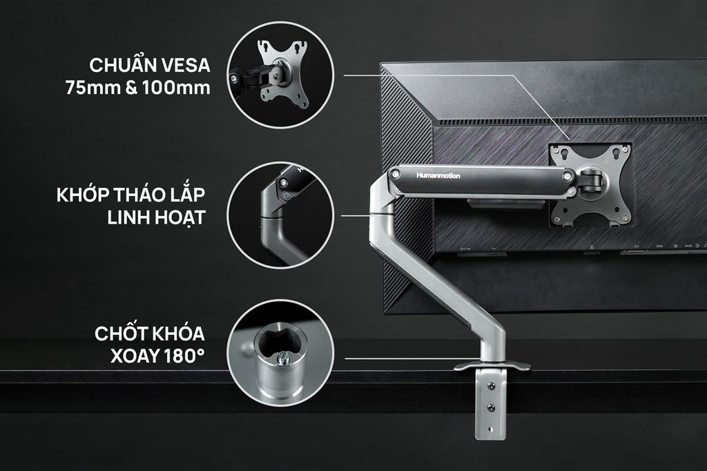 Giá treo màn hình máy tính hiện nay đã là một phụ kiện không thể thiếu cho dân văn phòng cũng như game thủ. Giá treo màn hình Humanmotion T6-1 Pro giúp cho người sử dụng thoải mái khi làm việc & giải trí. Treo màn monitor hiện nay đã là xu thế, tiết kiệm không gian cho bàn làm việc.