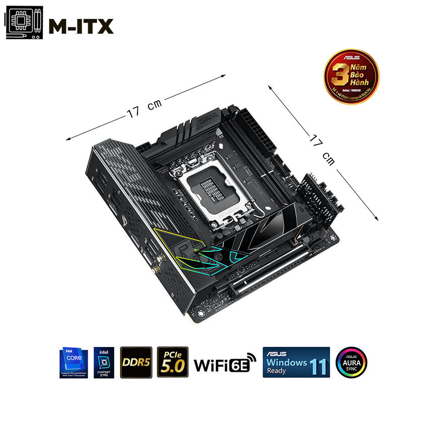 ASUS ROG STRIX Z790-I GAMING WIFI DDR5 là dòng bo mạch chủ mới thuộc series Z790 mới nhất đến từ ASUS. Sở hữu thiết kế ITX nhỏ gọn độc đáo cùng tông màu gaming mạnh mẽ nhưng vô cùng tinh tế qua những chi tiết được gia công vô cùng tỉ mỉ. Cùng với hiệu năng đỉnh cao từ chipset Intel Z790 LGA 1700 hỗ trợ tối đa sức mạnh cho cả bộ máy.