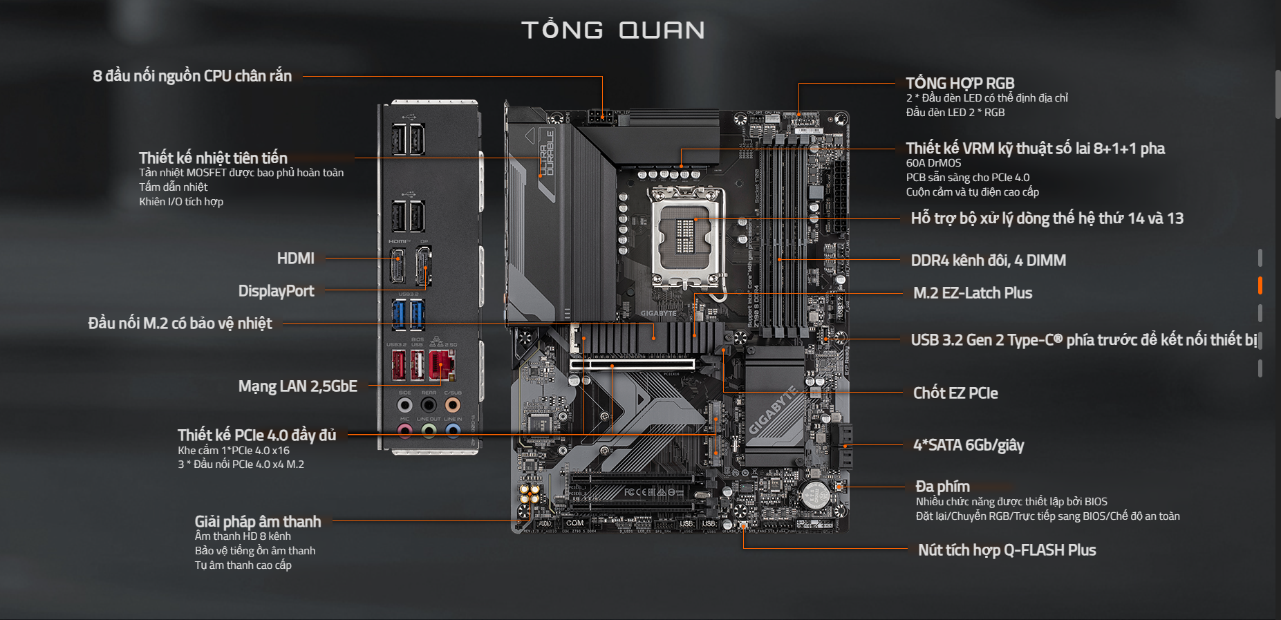 Socket LGA1700: Hỗ trợ Bộ xử lý Intel® Core™ thế hệ thứ 14, 13 và 12 |