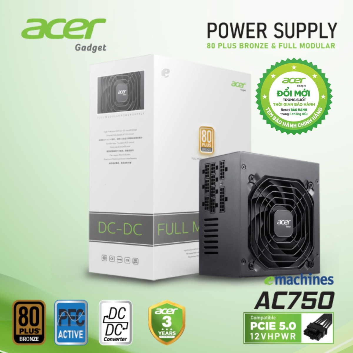 | Tên sản phẩm | Nguồn máy tính ACER AC750 FR Bronze Full modular |