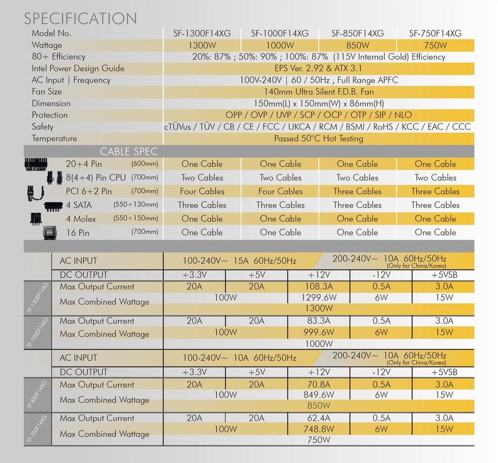 SuperFlower Leadex VII XG 1300W được trang bị đầy đủ các tính năng bảo vệ an toàn, bao gồm OVP, UVP, OCP, OPP, SCP và OTP, bảo vệ toàn diện cho hệ thống của bạn khỏi các sự cố về điện.