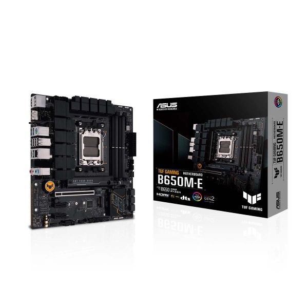 Mainboard ASUS TUF GAMING B650M-E có tất cả các yếu tố thiết yếu của Bộ xử lý máy tính để bàn AMD Ryzen™ mới nhất và kết hợp chúng với các tính năng sẵn sàng cho trò chơi và độ bền đã được chứng minh. Được thiết kế với các thành phần cấp quân sự, giải pháp nguồn được nâng cấp và hệ thống làm mát toàn diện, bo mạch chủ này vượt xa mong đợi với hiệu suất ổn định và chắc chắn cho trò chơi marathon. Bo mạch chủ TUF GAMING cũng trải qua thử nghiệm độ bền nghiêm ngặt để đảm bảo rằng chúng có thể xử lý các điều kiện mà những bo mạch chủ khác có thể không đáp ứng được. Về mặt thẩm mỹ, mẫu máy này kết hợp các yếu tố thiết kế hình học và màu đen mờ chắc chắn để phản ánh độ tin cậy và độ ổn định vốn là đặc điểm của dòng TUF GAMING. Nền tảng này cung cấp sức mạnh và khả năng kết nối mà các ứng dụng PC AI tiên tiến yêu cầu.