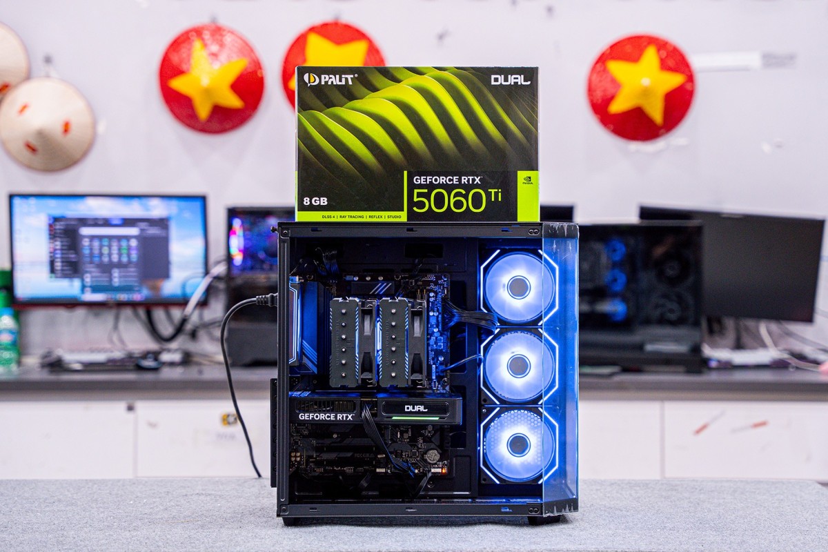 Card màn hình Palit GeForce RTX 5060 Ti Dual 8GB GDDR7 mang lại hiệu quả làm mát cổ điển trong thiết kế màu đen bóng bẩy, hiện đại. Quạt đôi 95mm mang lại khả năng làm mát cạnh tranh và hoạt động êm ái, trong khi thiết kế 2 khe cắm nhỏ gọn phù hợp với các cấu trúc có kích thước nhỏ. Tấm ốp lưng chắc chắn tăng thêm tính toàn vẹn về mặt cấu trúc. Tận hưởng ánh sáng RGB tinh tế để có tính thẩm mỹ tinh tế và tùy chỉnh vỏ bọc của bạn với hỗ trợ Palit Maker mà không làm mất hiệu lực bảo hành. Được hỗ trợ bởi NVIDIA Blackwell, GPU GeForce RTX™ 50 Series mang đến khả năng AI thay đổi trò chơi cho các game thủ và nhà sáng tạo.