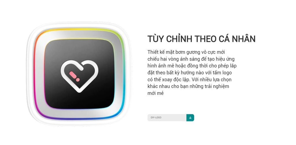 Thiết kế mặt máy bơm gương vô cực mới chiếu ra hai vòng sáng cho hiệu ứng hình ảnh mê hoặc đồng thời cho phép lắp đặt theo bất kỳ hướng nào với tấm biểu trưng có thể xoay độc lập. Để tùy chỉnh đầy đủ, một khoảng trống được bổ sung cho thiết kế của riêng bạn.
