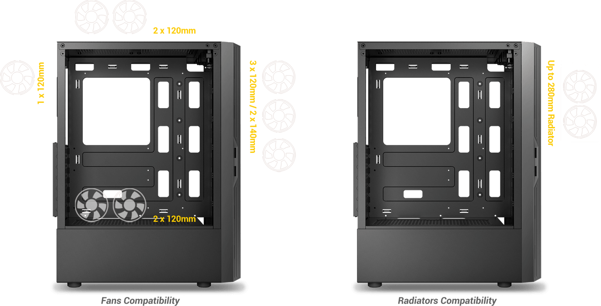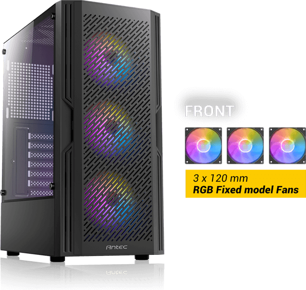 Antec AX20 nổi bật với thiết kế khe hút gió dạng thanh nghiêng và lưới dày đặc đặc biệt để tản nhiệt lớn. Thiết kế mặt bên bằng kính cường lực nửa xem cho phép bạn thể hiện cấu hình chơi game của mình mà không gặp trở ngại. Antec AX20 hỗ trợ đồng thời 8 quạt 120 mm và cung cấp cho người dùng các tùy chọn làm mát đa dạng.