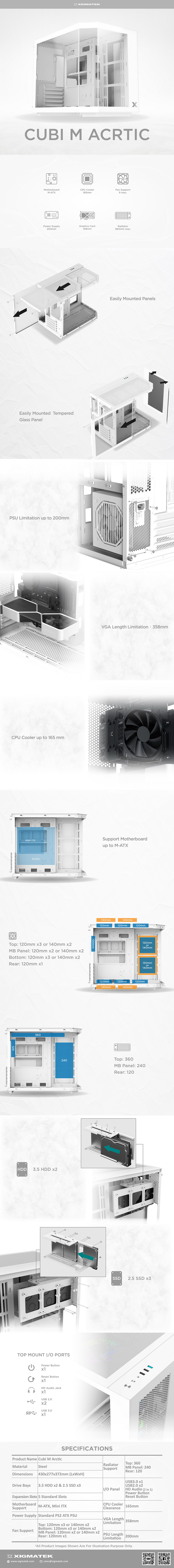 Xigmatek Cubi M không chỉ là nơi chứa đựng các thành phần máy tính mà còn hỗ trợ tối đa cho nhiều linh kiện khác nhau. Với hỗ trợ cho bo mạch chủ từ mATX đến ITX, bộ nguồn điện ATX và thậm chí còn có thể chứa đựng GPU dài đến 358 mm, case Xigmatek Cubi M là nơi lý tưởng để hiện thực hóa những ý tưởng sáng tạo của bạn.