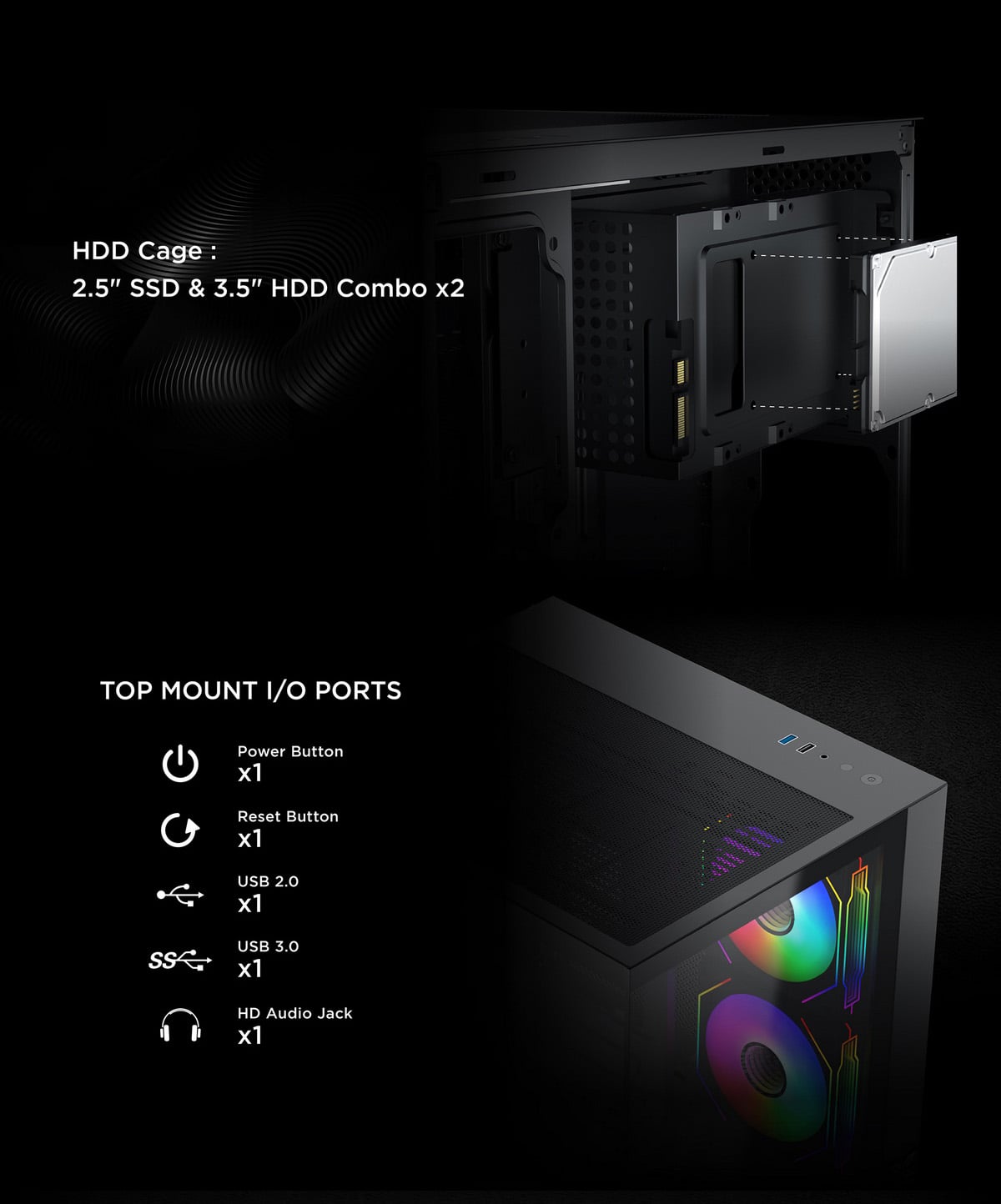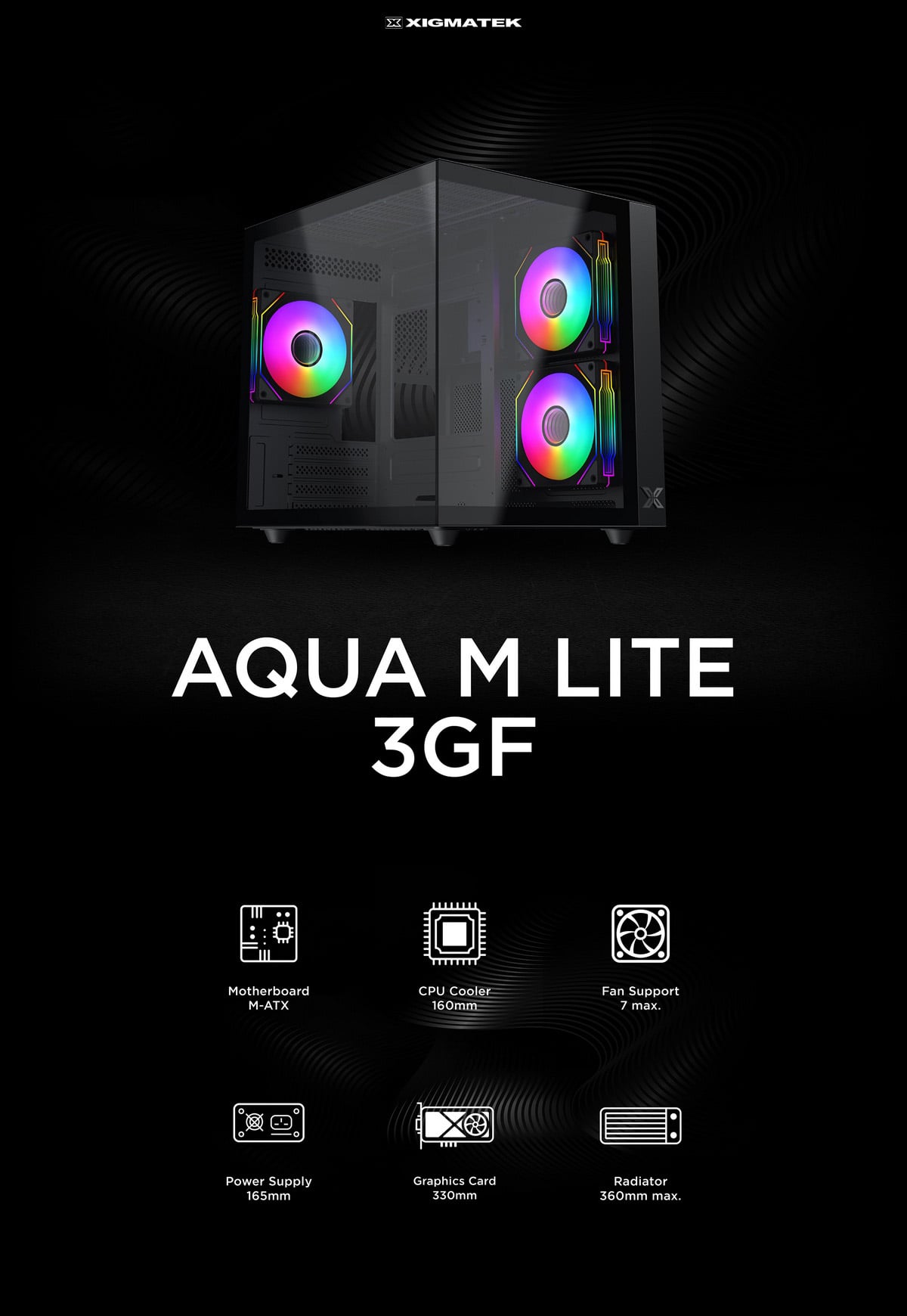 VỎ CASE XIGMATEK AQUA M LITE 3GF GAMING (M-ATX, KÈM 03 FAN XIGMATEK G20F)