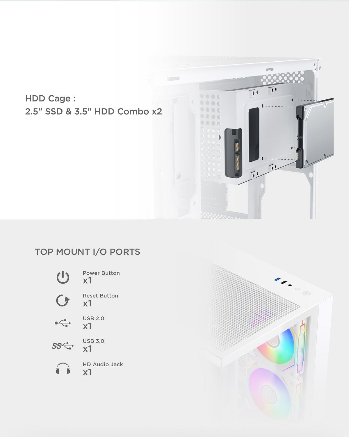VỎ CASE XIGMATEK AQUA M LITE ARTIC 3GF GAMING (M-ATX, KÈM 03 FAN XIGMATEK G20F)